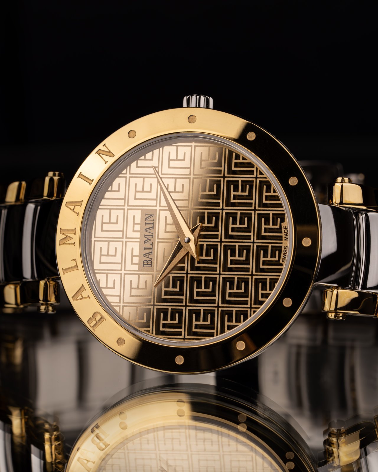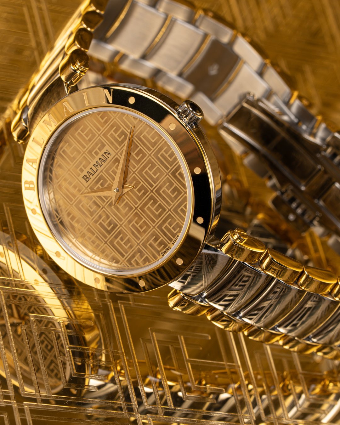 De Balmain Balmainia Bijou is een verfijnd dameshorloge dat helderheid combineert met een modern ontwerp geïnspireerd op de Parijse Haute Couture. De wijzerplaat met spiegelgouden motief, de bezel gegraveerd met "Balmain" en het minimalistische display voegen een zelfverzekerde touch toe, terwijl de 33 mm bicolor roestvrijstalen en geelgouden PVD kast, met een compromisloos profiel van 6,25 mm en bijpassende armband, alledaagse stijl biedt. Dit horloge van Zwitserse makelij is voorzien van saffierglas.