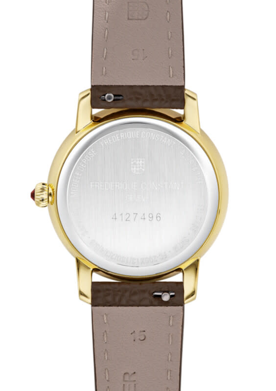 Het Classics Slimline Ladies Moonphase horloge is ontworpen om de delicate rondingen van de pols van de drager op een tedere, evenwichtige manier te benadrukken met zijn 30mm kast. Dit verfijnde model heeft een maanfase op de wijzerplaat. Deze kostbare, eigentijdse collectie belichaamt de expertise en het vakmanschap van Frederique Constant, en biedt luxe Zwitserse horloges die betaalbaar zijn en een vleugje hemelse poëzie.