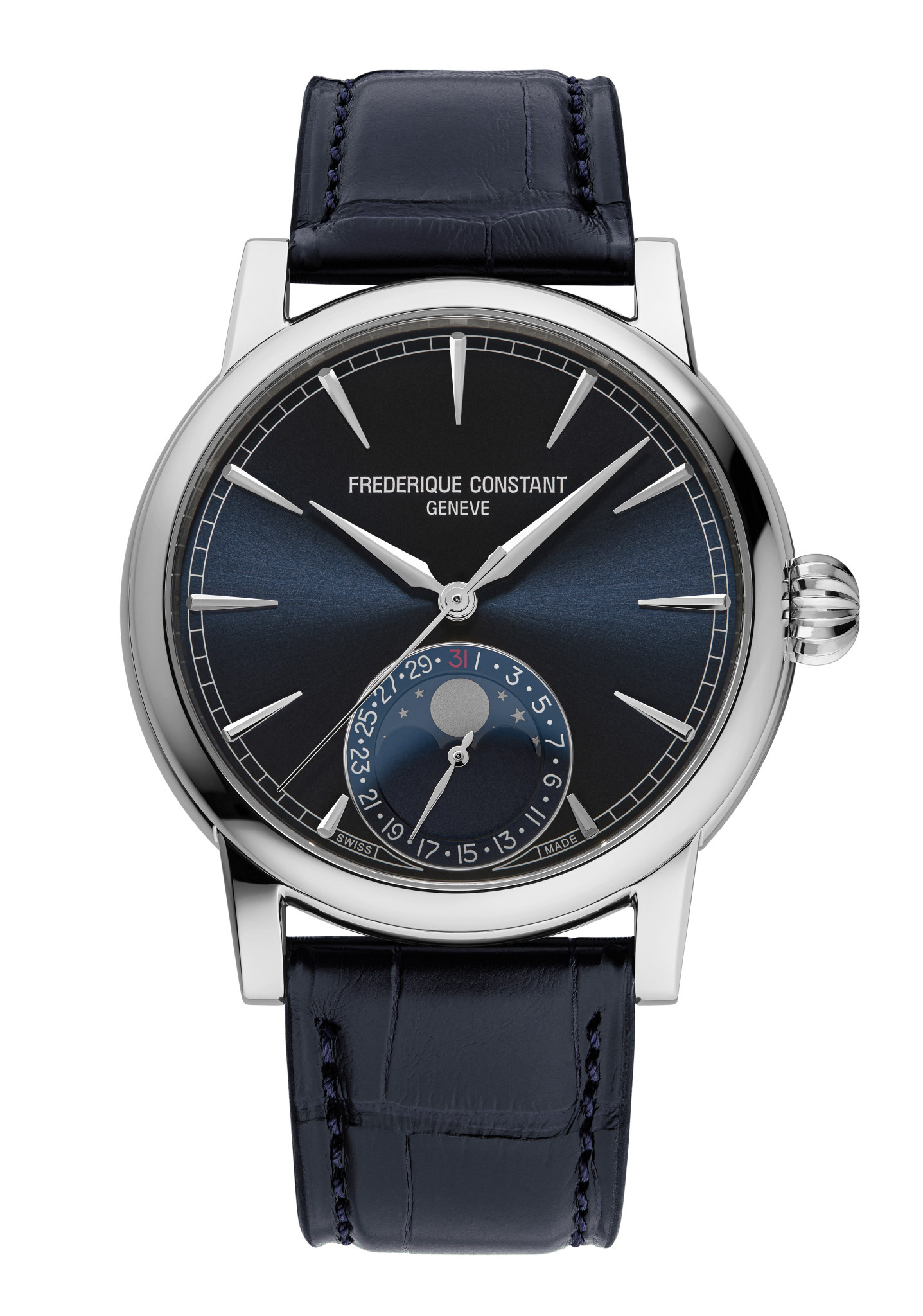 Het "Flagship"-model van Frederique Constant, de Classic Moonphase Date Manufacture, is ingetogen, elegant en eigentijds. Het blijft trouw aan zijn traditionele DNA, ook al is de collectie uitgebreid met een nieuwe variant van 40 millimeter, voorzien van de nieuwe Classic stalen kast.