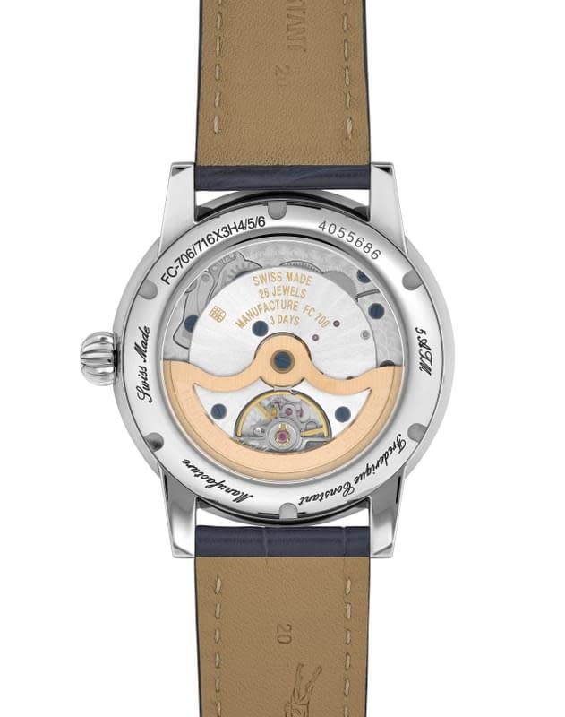Ontworpen voor dagelijks gebruik – en voor alle liefhebbers van het horloge-erfgoed van Genève – heeft het horloge een nieuwe, overzichtelijke sunburst wijzerplaat, met delicate wijzers die worden aangestuurd door een nieuw FC-716 uurwerk. Dit laatste is in eigen huis ontwikkeld en heeft een gangreserve van 72 uur.
