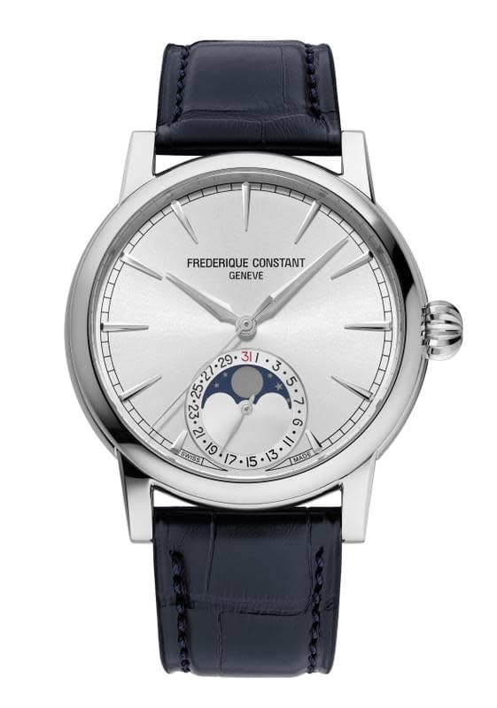 Het "flagship"-model van Frederique Constant, de Classic Moonphase Date Manufacture, is ingetogen, elegant en eigentijds. Het blijft trouw aan zijn traditionele DNA, ook al is de collectie uitgebreid met een nieuwe variant van 40 millimeter, voorzien van de nieuwe Classic stalen kast.