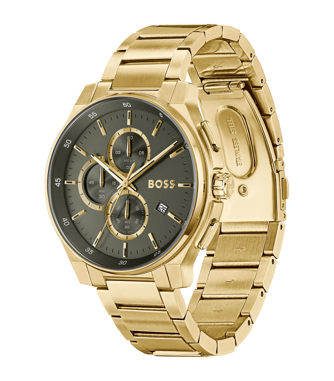 Dit Hugo Boss horloge heeft een kast gemaakt van Staal zilver met een diameter van 44 mm en is voorzien van een metaal band. In de kast bevindt zich een Seiko Instruments Inc. kwaliteitsuurwerk en is afgewerkt met Mineraalglas.