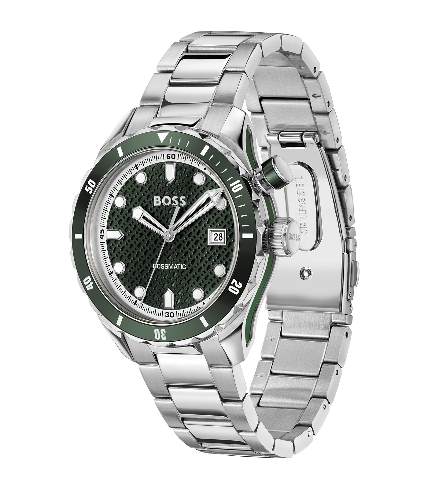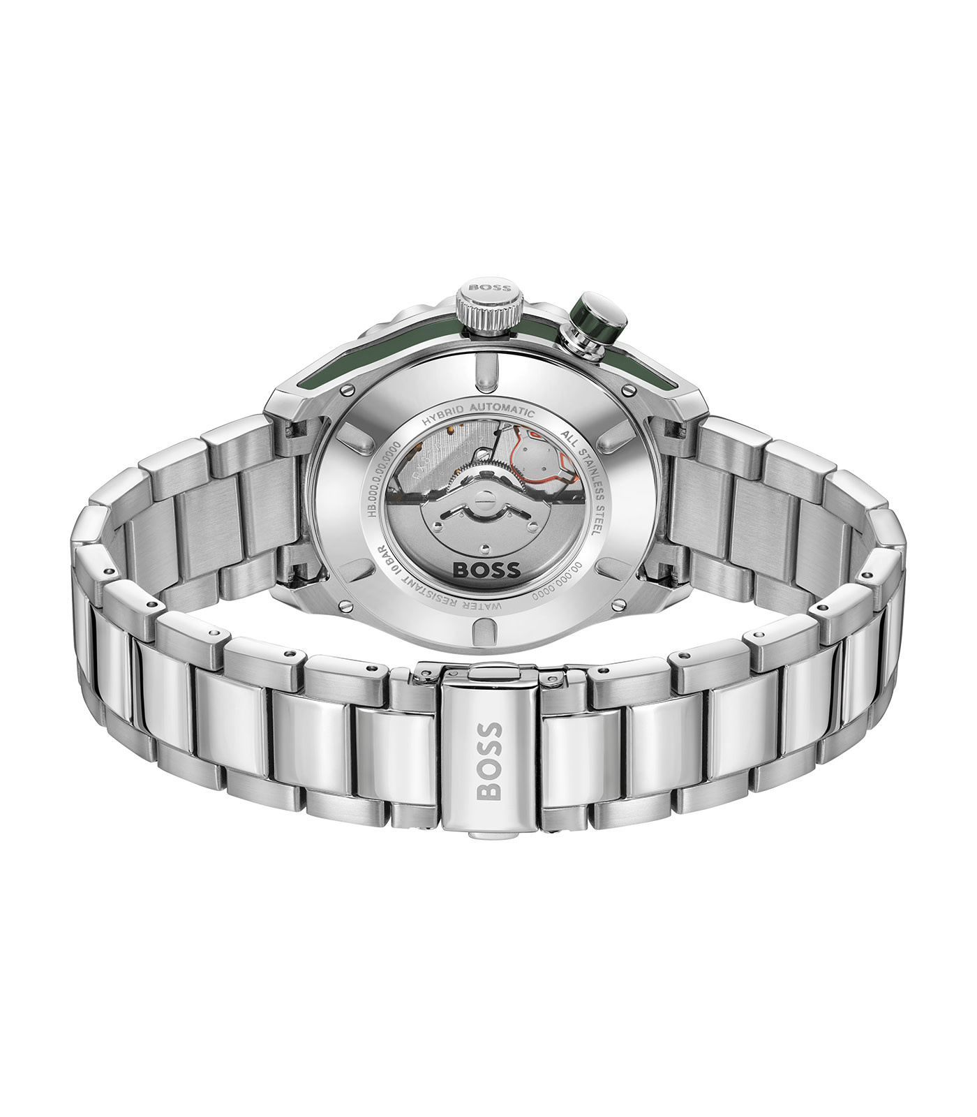 Dit Hugo Boss horloge heeft een kast gemaakt van Staal zilver met een diameter van 42 mm en is voorzien van een metaal band. In de kast bevindt zich een Seiko Instruments Inc. kwaliteitsuurwerk en is afgewerkt met Mineraalglas.
