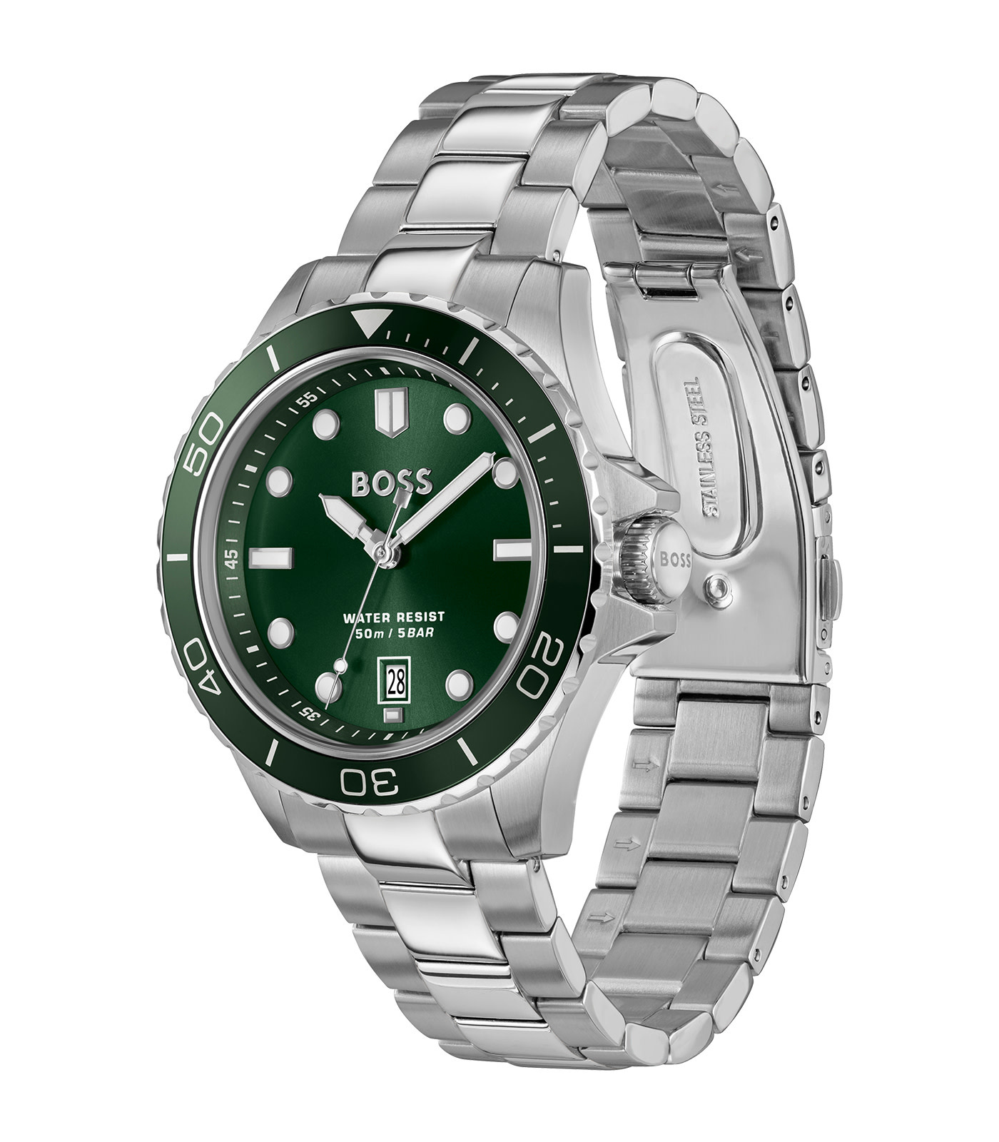 Dit Hugo Boss horloge heeft een kast gemaakt van Staal zilver met een diameter van 41 mm en is voorzien van een Staal zilver band. In de kast bevindt zich een Seiko Instruments Inc. kwaliteitsuurwerk en is afgewerkt met Mineraalglas.