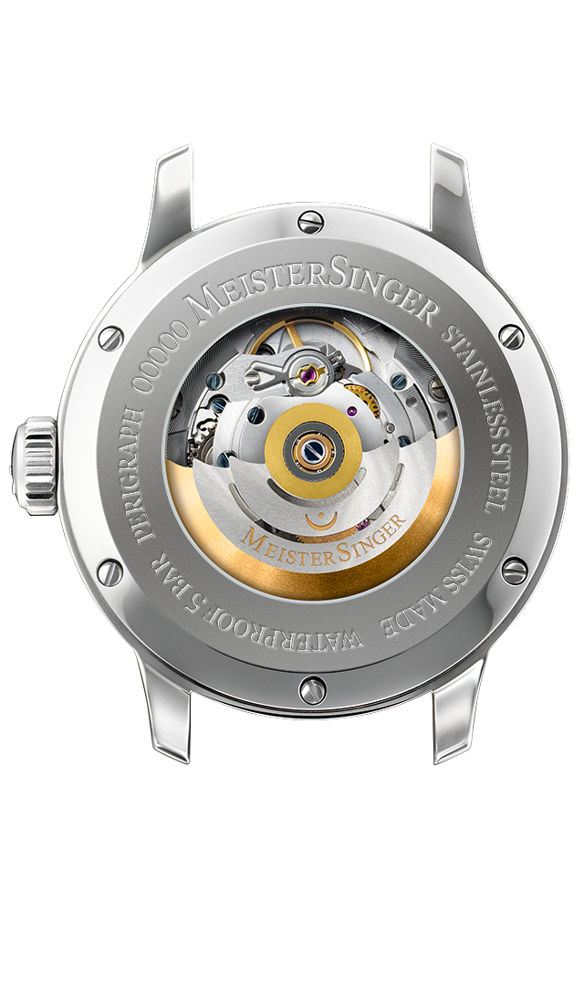 De lijnhiërarchie die typisch is voor de MeisterSinger-horloges met één wijzer, verdeelt de tijdsaanduiding ook in halve en kwartieren, waardoor het gemakkelijker wordt de tijd nauwkeurig af te lezen.