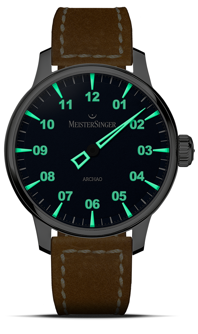 Met de Archao krijgt de collectie in het jubileumjaar er weer een karakteristiek nieuw lid bij. De krachtige, opgezette uur markeringen komen overeen met de tweedelige wijzer en laten het al vermoeden: de Archao slaat overdag licht op en geeft dit ’s nachts met maximale lichtkracht weer af. De opvallende uur markeringen, de tweecijferige getallen en de markante naaldwijzer zijn namelijk uitgevoerd als witte LumiBlocks, die als een accu lichtsterkte opslaan voor de donkere uren van de dag. Het resultaat: dag en nacht een plaatje van een horloge.