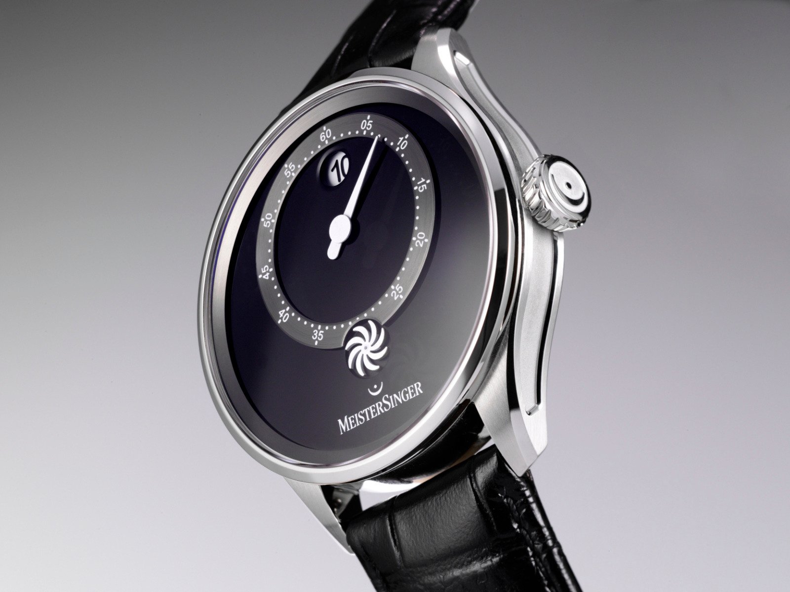 De kenmerkende lijnindeling van MeisterSinger-horloges met één wijzer verdeelt de tijdweergave bovendien in halve en kwartieren, waardoor de tijd nauwkeuriger af te lezen is.