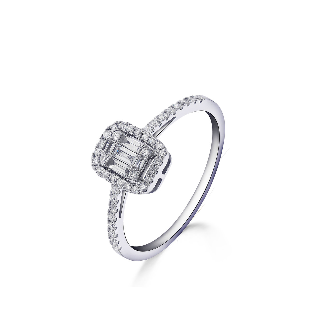 Wit gouden ring 18kt met briljant- en baguetteslijpsels.